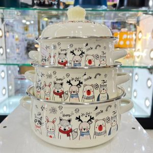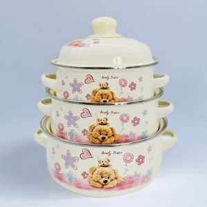 • سرویس قابلمه لعابی 6 پارچه کودک متوسط طرح خرس| ست 3 تایی مینی قابلمه لعابی با درب لعابی (پس کرایه)