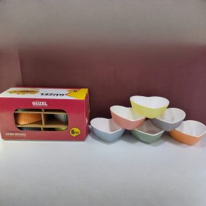 • کاسه (پیاله) ماست خوری آجیل خوری مدل الماسی گوزل قلبی رنگی پاستیلی 6 عددی GUZEL