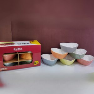 • کاسه (پیاله) ترشی خوری مدل الماسی گوزل قلبی رنگی پاستیلی 6 عددی GUZEL