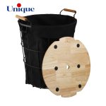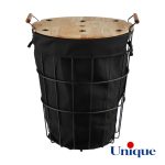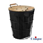 سبد رخت چرک: این محصول لاندری لباس دارای بدنه فلزی و رنگ مشکی الکترواستاتیک کوره ضد زنگ و درب چوبی بسیار با کیفیت و زیبا می باشد. درب این سبد از جنس چوب رابروود وارداتی بسیار با کیفیت است. درون جا رختی کوچک نیز یک پارچه وجود دارد که به راحتی قابل جدا کردن از سبد و قابل شست و شو می باشد. دسته های چوبی این سبد نیز ظاهر بسیار زیبا و شیک برای آن ایجاد کرده است.