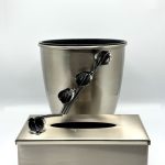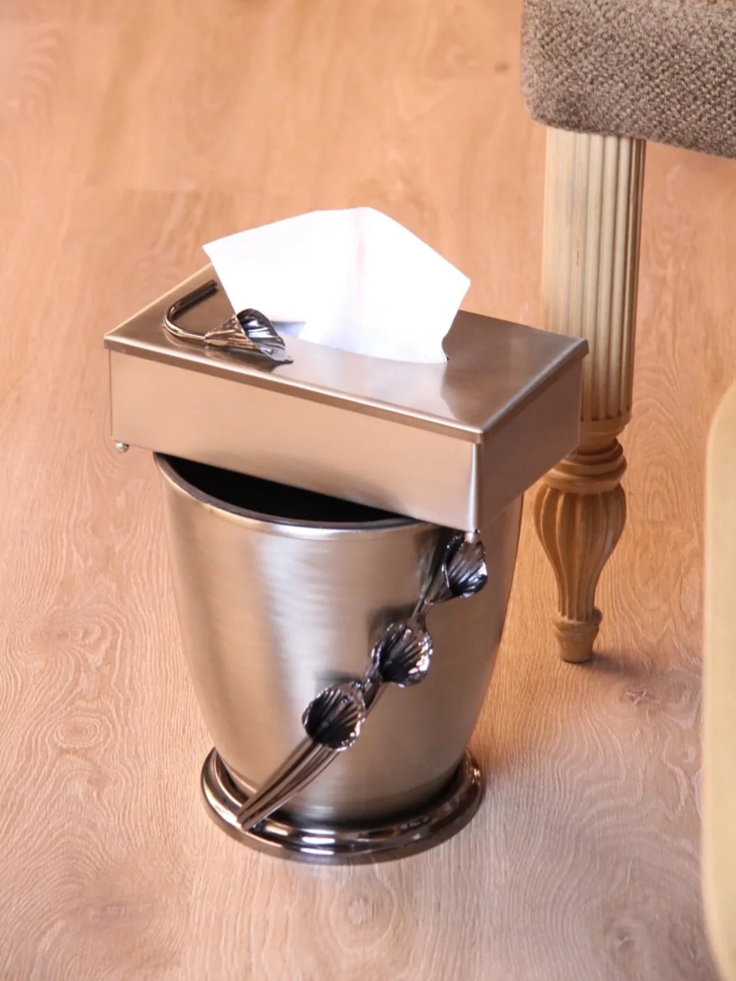 🎗️ست سطل زباله و جادستمال پذیرایی طرح لیلیوم نیکل نقره ای مات سالی نو
