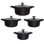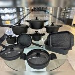 📝ساختار بدنه اقلام این سرویس از جنس آلومینیوم میباشد که با پوشش گرانیت پوشیده شده.درب اقلام از جنس شیشه و دستگیره ها از جنس باکالیت نسوز میباشند.