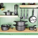 🎗️ظروف موجود در سرویس قابلمه 25 پارچه WOLLBERG ضخامت بالایی دارند ، این نکته باعث پخش حرارت به صورت عمیق و به صورت مساوی می شود به طوری که مواد خوراکی بسیار دیر ته گرفته و نمی چسبد. پوشش داخلی این ظروف از جنس GRANITE گرانیت مقاوم سه لایه نچسب میباشد. این پوشش گرانیتی بسیار مقاوم بوده و دارای سه لایه است که باعث میشود سطح چسبندگی بسیار کاهش یابد. این سرویس مناسب تمامی آشپزخانه ها و با کیفیتی بالا می باشد که با طراحی زیبای خود به آشپزخانه ظاهری مدرن می بخشد.