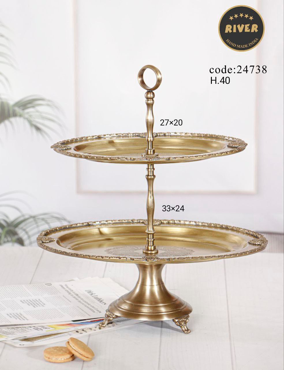 شیرینی خوری دوطبقه دسته دار برنجی برند ریور کد ۲۴۷۳۸