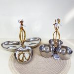 🎗️ شیرینی خوری ۲طبقه بیضی استیل برنج زنبق B/SUN هند