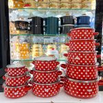 سرویس قابلمه لعابی مناسب جهیزیه مدل خالخالی شامل پنج قابلمه در سایزهای ۱۶ ؛۱۸؛۲۰؛۲۲؛۲۴ سانتیمتر است.
