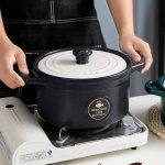 - طراحی کاربردی: دو دسته محکم برای جابهجایی آسان، درب محکم برای حفظ عطر و طعم غذا و طراحی سبک نوردیک مدرن.