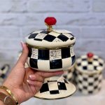 قندان و شکلات خوری لعابی طرح شطرنجی – Paçi