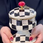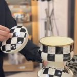 قندان و شکلاتخوری لعابی طرح شطرنجی — Paçi