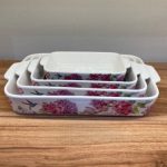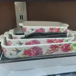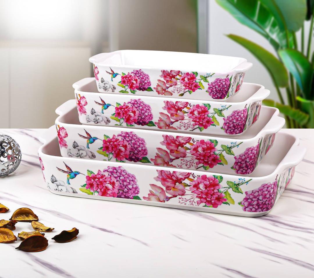 ست ۴ تایی تابه سرامیکی مستطیل طرحدار «گل دار»