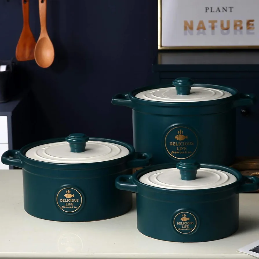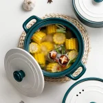 قابلمه سرامیکی گرد به سبک نوردیک، مناسب پخت خورش، سوپ و برنج با طراحی زیبا و کاربردی.