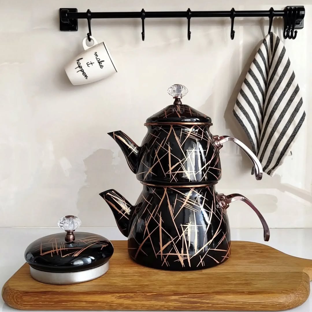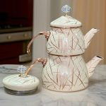 کتری و قوری تمام لعابی شاهین طرح ماربل دسته بغل ساخت ترکیه با طراحی زیبا، کیفیت بالا و لعاب مقاوم، گزینهای عالی برای استفاده روزمره و دمآوری چای خوشطعم است. این محصول برای شعله مستقیم مناسب بوده و از رنگ ثابت و ماندگار برخوردار است.