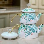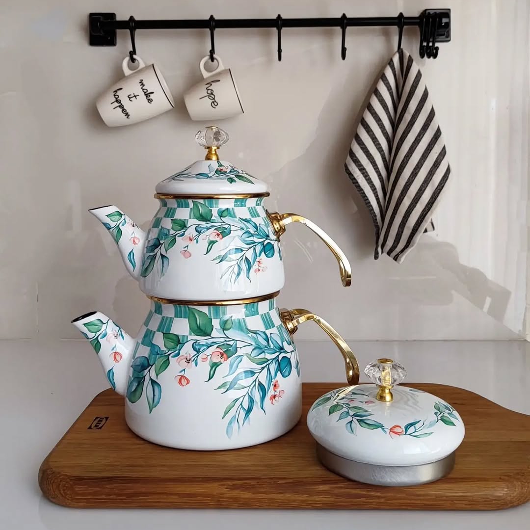 کتری و قوری تمام لعابی شاهین طرح زیتون دسته بغل ساخت ترکیه با طراحی زیبا، کیفیت بالا و لعاب مقاوم، گزینهای عالی برای استفاده روزمره و دمآوری چای خوشطعم است. این محصول برای شعله مستقیم مناسب بوده و از رنگ ثابت و ماندگار برخوردار است.