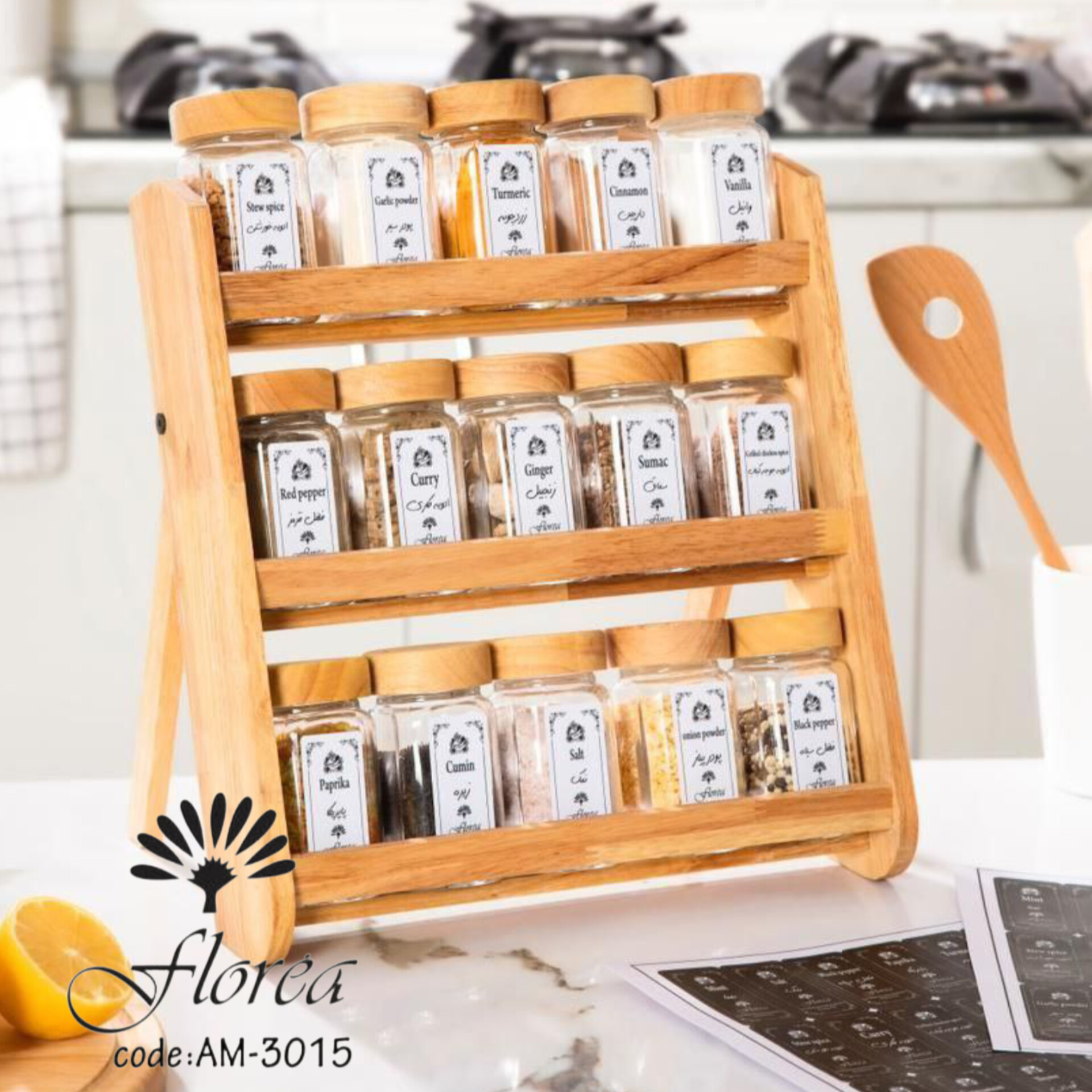 استند ادویه مکارتی دو حالته فلورا یک جاادویه چوبی کاربردی از جنس رابروود است که با طراحی زیبا و مقاوم، نظمدهی ادویهها را ساده و حرفهای میکند. این محصول با قابلیت استفاده روی کانتر یا داخل کشو، مناسب آشپزخانههای مدرن و کمجا است.