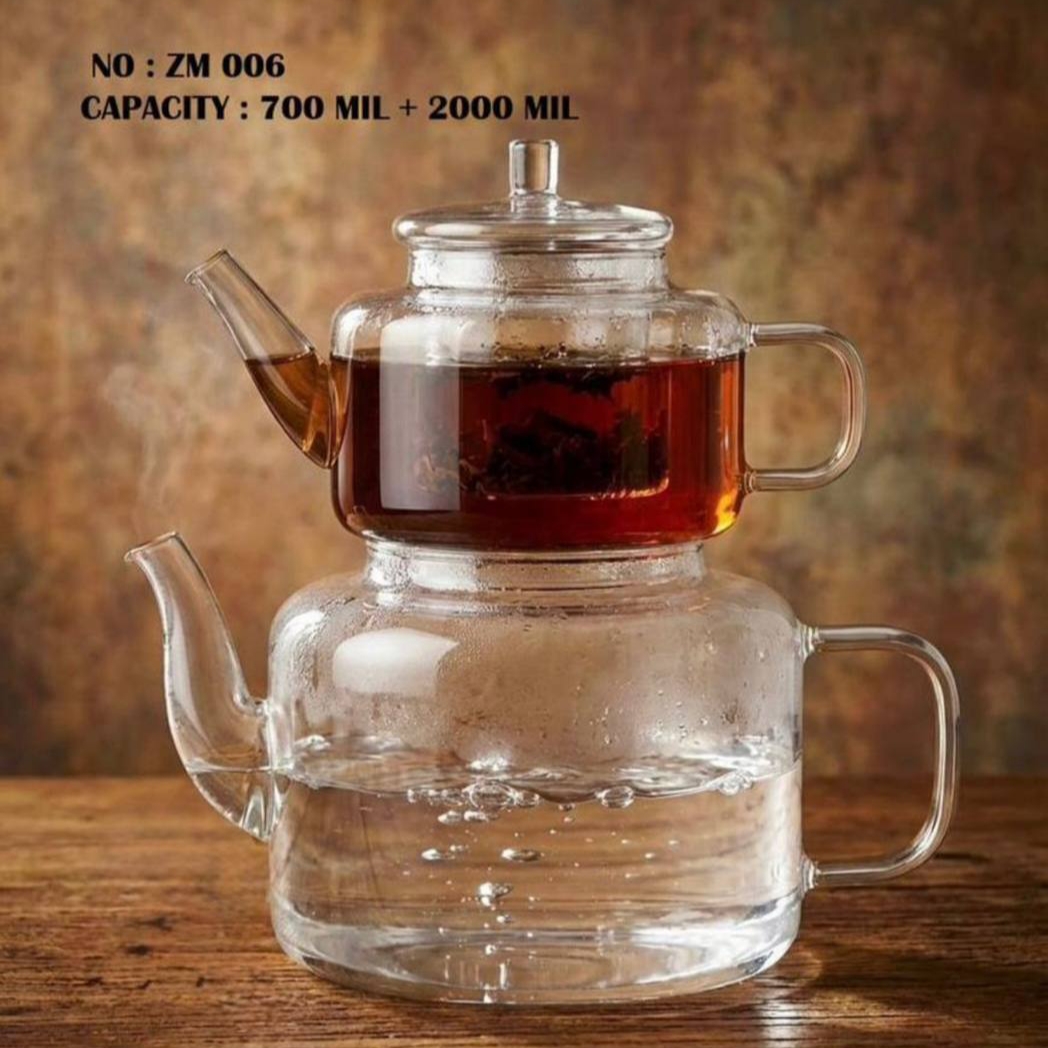کتری و قوری پیرکس شعله مستقیم مدل ZM006 ساخته شده از شیشه پیرکس مقاوم در برابر حرارت و شوک دمایی،