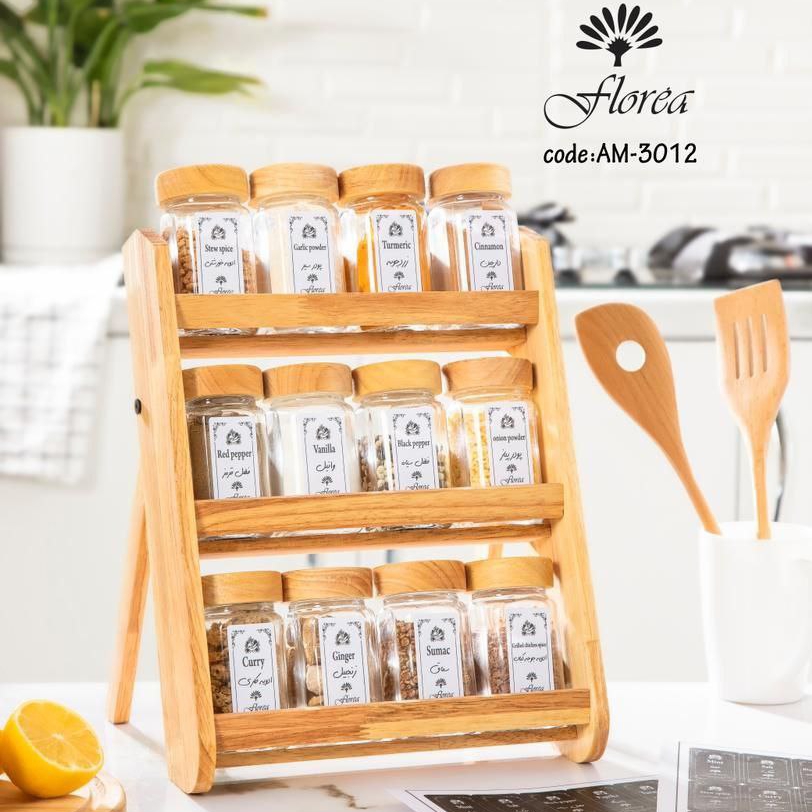 استند ادویه مکارتی دو حالته فلورا یک جاادویه چوبی کاربردی از جنس رابروود است که با طراحی زیبا و مقاوم، نظمدهی ادویهها را ساده و حرفهای میکند. این محصول با قابلیت استفاده روی کانتر یا داخل کشو، مناسب آشپزخانههای مدرن و کمجا است.
