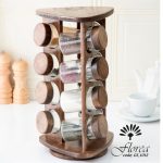 جا ادویه گردان فلورا ساخته شده از چوب طبیعی و مقاوم آکاسیا با طراحی شیک و کاربردی،