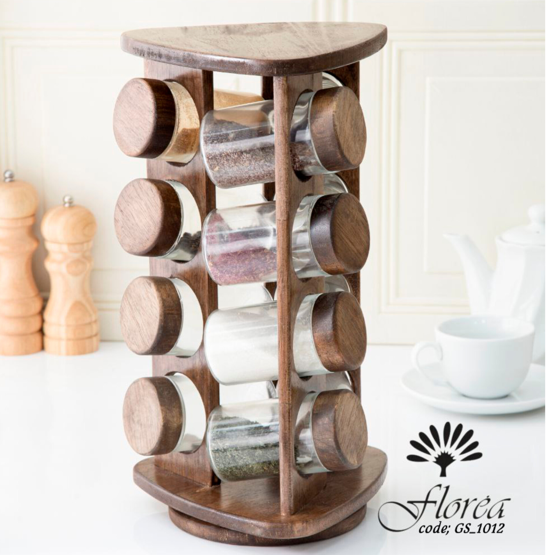 ست جا ادویه 12 تایی گردان مثلثی فلورا Florea آکاسیا و شیشه (پس کرایه)