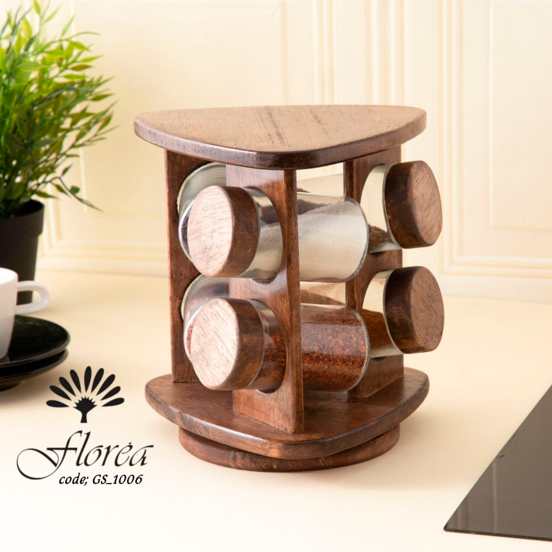 جا ادویه گردان فلورا ساخته شده از چوب طبیعی و مقاوم آکاسیا با طراحی شیک و کاربردی،