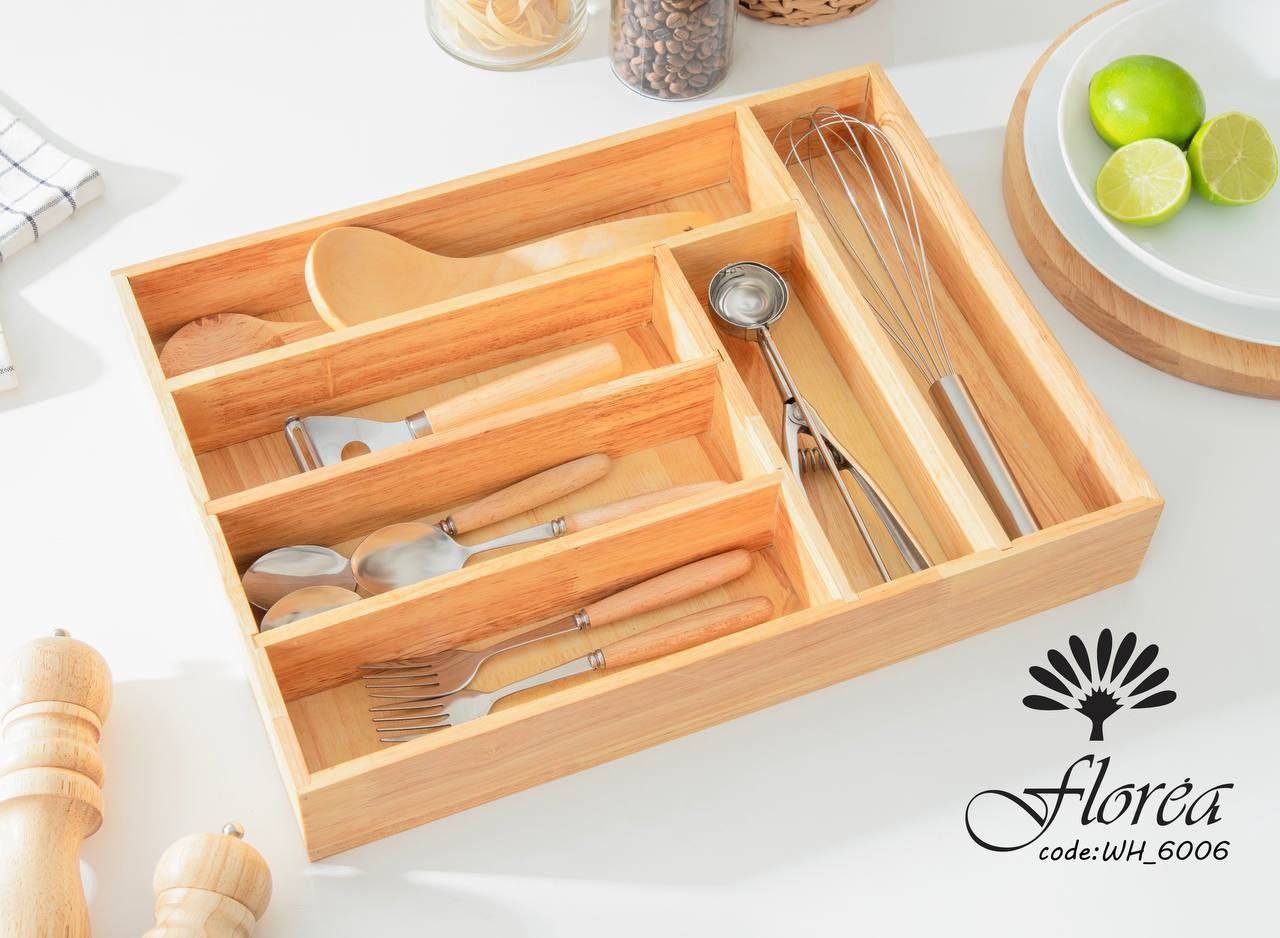 جا قاشقی داخل کابینتی ساده چوب رابروود یکی از محصولات باکیفیت برند فلوریا (Florea) است که برای مرتبسازی قاشق، چنگال، کارد و سایر لوازم آشپزخانه طراحی شده است. این نظمدهنده با 6 بخش مجزا، نظم و دسترسی آسان را برای شما فراهم میکند.