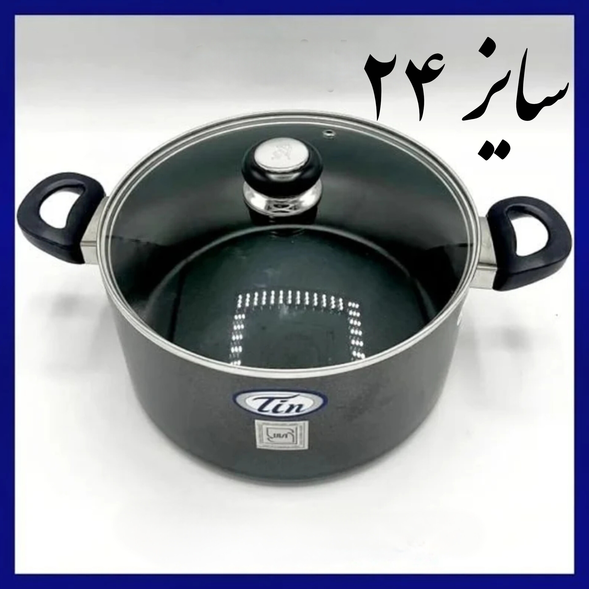 قابلمه تفلون تین با درب پيرکس با متریال با کیفیت بهترین انتخاب برای آشپزخانه شما