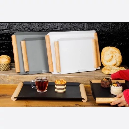 - سینی پذیرایی چوب و فلز در 2 سایز بزرگ، و کوچک – طراحی شیک و مدرن برای سرو انواع چای، دسر و دمنوش گرم. دوام بالا، حمل آسان