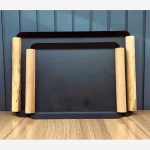 سینی پذیرایی چوب و فلز در دو سایز بزرگ و کوچک – طراحی شیک و مدرن برای پذیرایی و دیزاین میز.