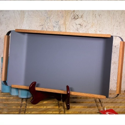 - سینی پذیرایی چوب و فلز در سه سایز بزرگ، متوسط و کوچک – طراحی شیک و مدرن برای سرو انواع چای، دسر و دمنوش گرم. دوام بالا، حمل آسان